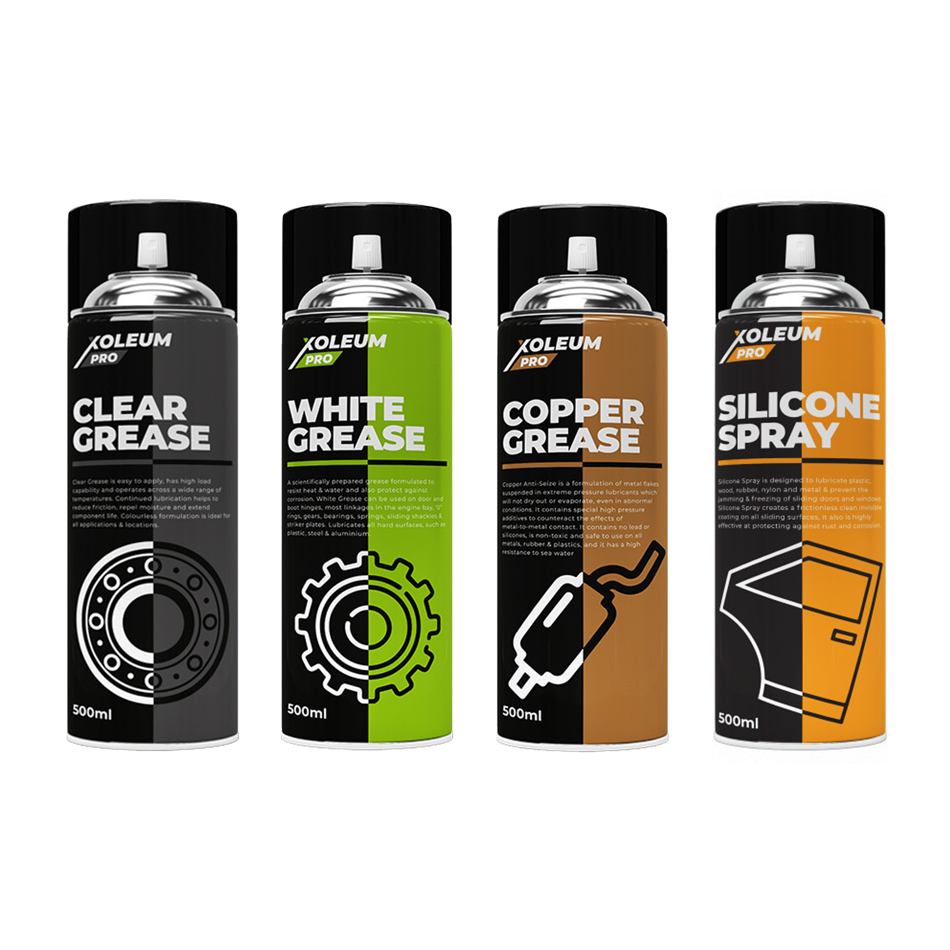 Xoleum Pro Spray Grease Set 4 Pack - CLAIRE, BLANC, Graisse CUIVRE, Spray SILICONE