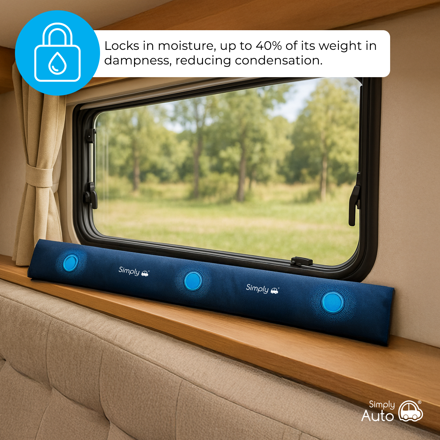 Filled with 2kg of activated silica gel granules, it absorbs up to 40% of its own weight in moisture, helping to reduce condensation build-up on windows and windscreens. By controlling excess damp, it also helps prevent rust, mildew, mould growth, and unpleasant musty odours inside your car, van, caravan, or motorhome.